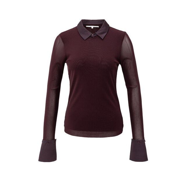 YAYA Mesh top met afneembare kraag fudge purple