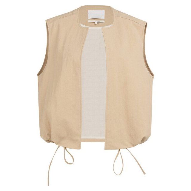Dit YAYA mouwloze zomerjack in de kleur Desert Beige is de ultieme finishing touch voor een gelaagde, eigentijdse outfit. De neutrale, zandkleurige tint straalt natuurlijke elegantie uit en vormt de perfecte basis voor talloze combinaties. Dit item is ontworpen voor de warme maanden en biedt een stijlvol alternatief voor een traditioneel vest of zware blazer, waardoor je look direct een modieuze upgrade krijgt zonder aan luchtigheid in te boeten.