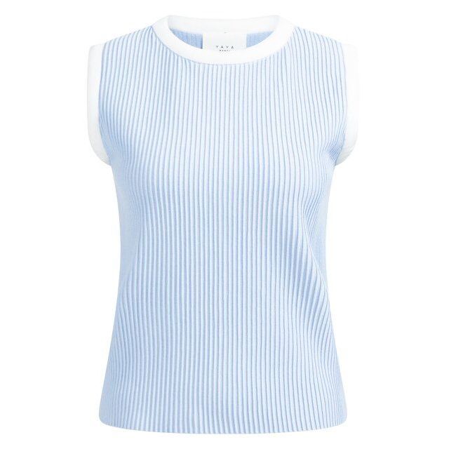 Deze YAYA mouwloze ribtrui in de kleur Ice Blue is een essentieel item voor een gelaagde en stijlvolle voorjaarslook. De frisse, lichtblauwe tint brengt direct een heldere energie in je outfit, terwijl de verfijnde ribstructuur zorgt voor een subtiel verticaal lijnenspel en een flatterende pasvorm. Dankzij het mouwloze ontwerp is deze trui perfect om solo te dragen op een zonnige dag of als chic laagje onder een kort jack of blazer wanneer het kwik daalt.