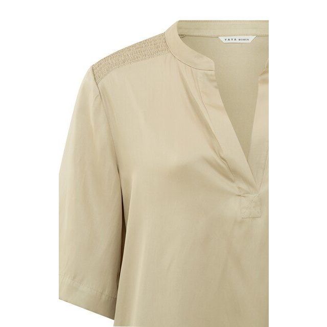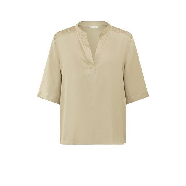 Verrijk je garderobe met onze prachtige YAYA satijnen V-hals top, compleet met smockdetail en driekwartsmouwen in een verfrissende lichtgroene kleur. Stijlvol en veelzijdig, een absolute must-have voor dit seizoen!