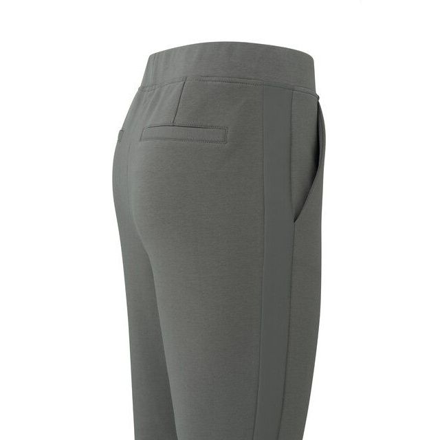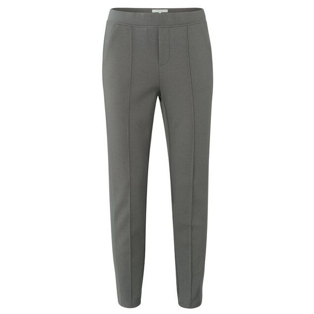 Deze broek van Yaya is donkergrijs van kleur. De broek heeft zakken en een naaddetail op de voorkant van de broekspijpen. De broek is leuk te combineren met de bijpassende scuba blazer van Yaya.