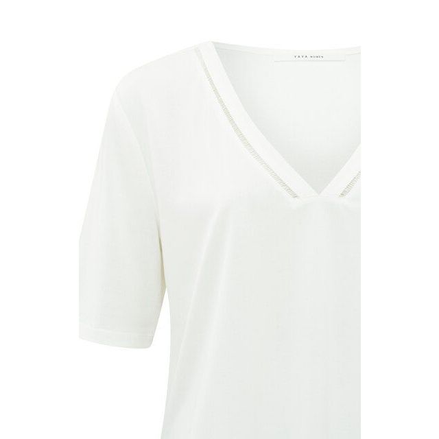 Krijg direct de aandacht met het YAYA T-shirt met tape halslijn in modieus off white. Een essentieel item voor een trendy uitstraling. Bestel vandaag nog en upgrade je garderobe!