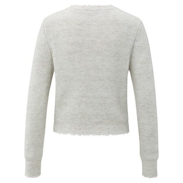 Het YAYA vest met subtiele boorddetails in cloud grey melange is een elegante knit met een moderne, comfortabele pasvorm. De verfijnde boorddetails geven het vest een subtiele, stijlvolle touch. In de zachte cloud grey melange tint is dit een veelzijdig item dat perfect te combineren is voor zowel casual als chique looks.
